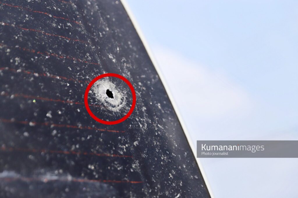 Am Heck des Fahrzeugs wurden zwei Einschusslöcher gefunden. Bei den anderen am Fahrzeug festgestellten Schäden scheint es sich um Spuren zu handeln, die entstanden sind, als die Polizei das Fahrzeug im Vorbeifahren unter Missachtung der polizeilichen Anordnungen getroffen hat.